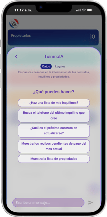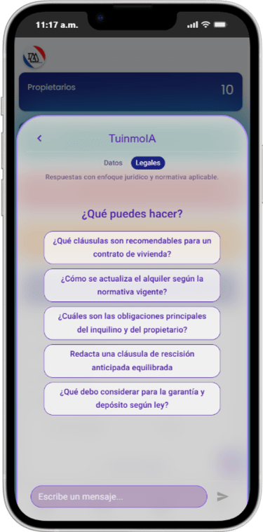 Tuinmo IA incorpora dos modos de chat diseñados para potenciar tu gestión inmobiliaria.