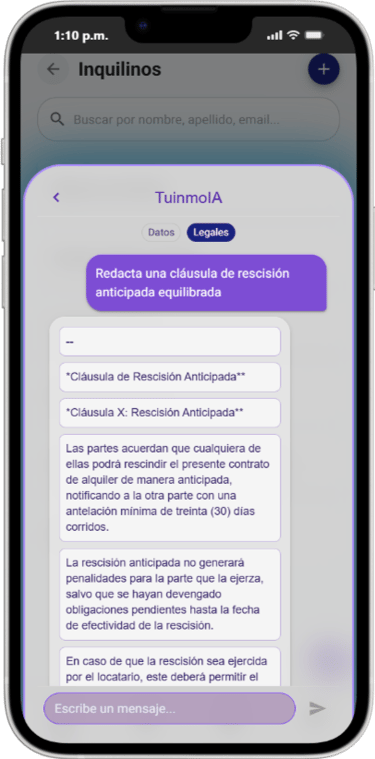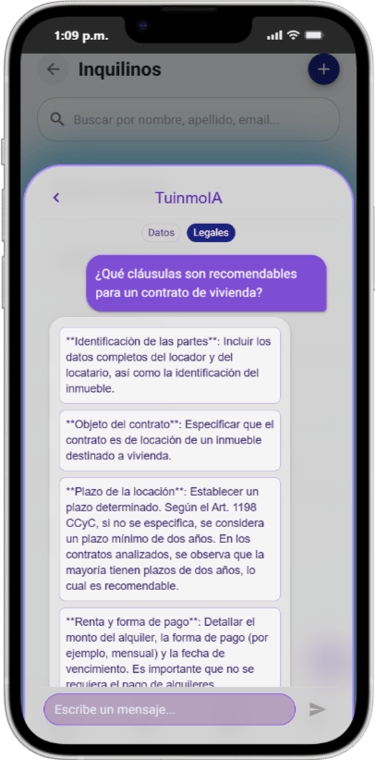 Por otro, el Modo Legales te brinda la posibilidad de realizar consultas jurídicas con total confianza: el chatbot actúa como un experto en el Código Civil y Comercial argentino, ofreciéndote orientación clara y fundamentada cuando más la necesitás.
